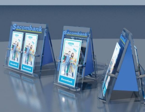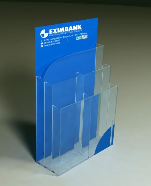 Kệ trưng bày sản phẩm KTB-2212 được làm từ chất liệu mica trong suốt Đài Loan 2mm, sản phẩm được kết hợp dán đề can với hình ảnh và nội dung theo yêu cầu của khách hàng.