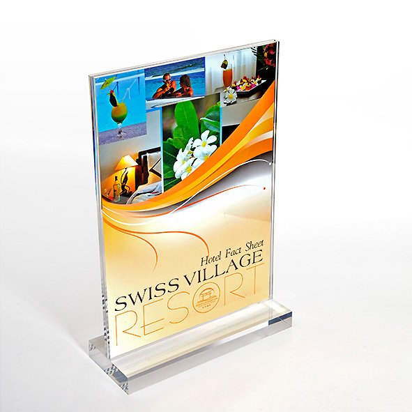 Kệ menu mica A4 đế tam giác liền KMN-2811 được làm hoàn toàn từ chất liệu mica trong suốt, phần chân đế uốn hình tam giác kết hợp dán đề can với nội dung theo yêu cầu của khách hàng. Nhận cung cấp kệ Menu Mica giá rẻ: