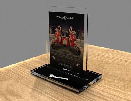 ệ trưng bày sản pẩm KTB-0111 được làm từ chất liệu mica trong suốt với độ dày 2.8mm và 2mm, sản phẩm kết hợp công nghệ in đề can với nội dung và hình ảnh theo yêu cầu của khách hàng.